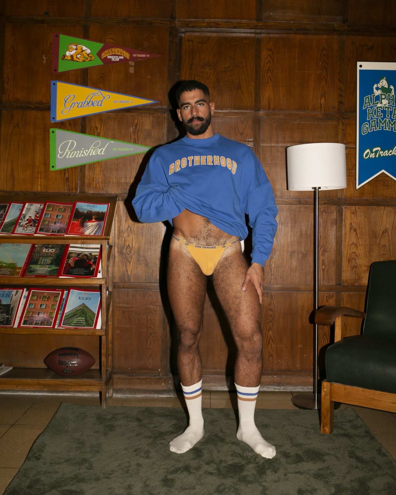 Varsity crewneck with a boxy athletic fit and the BROTHERHOOD lettering across the chest. Features a soft cotton feel, ribbed trims and a small emblem on the back. Built for warm-ups, campus days and that signature OnTracks team spirit.