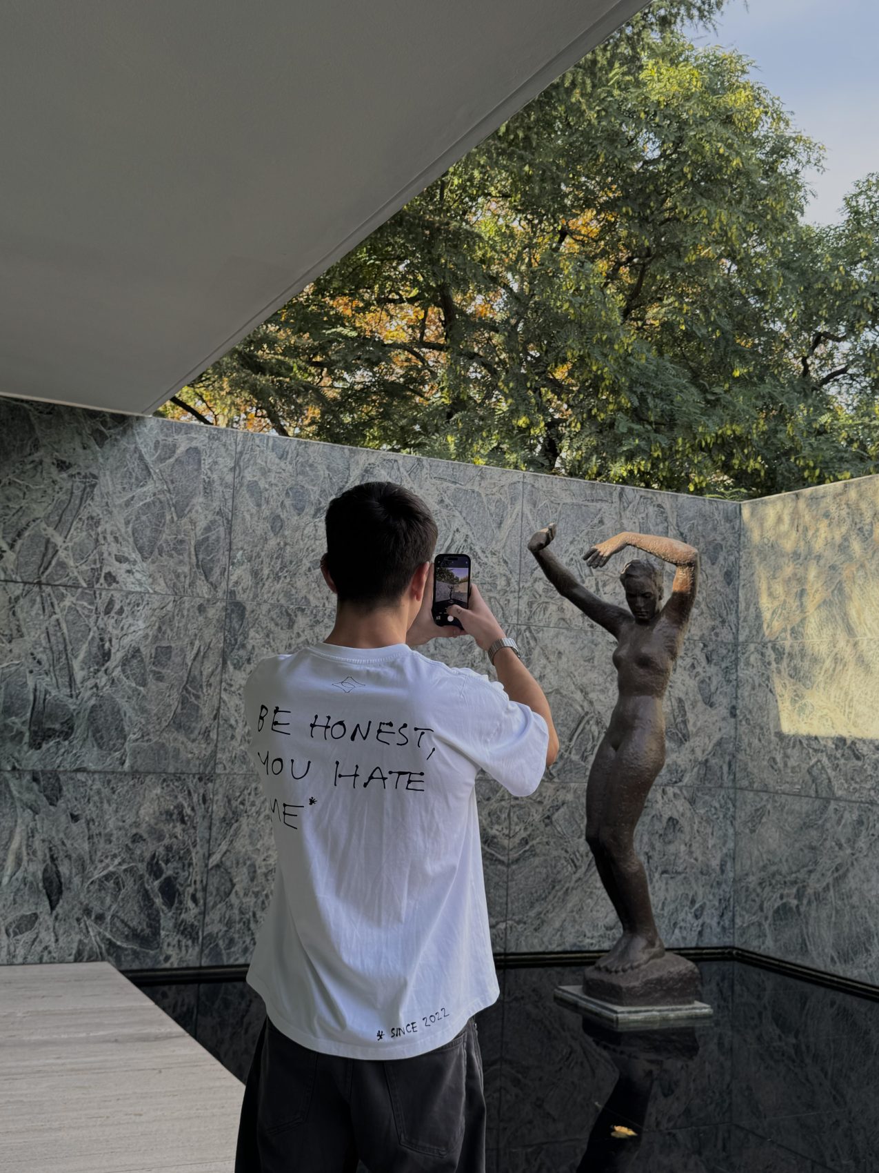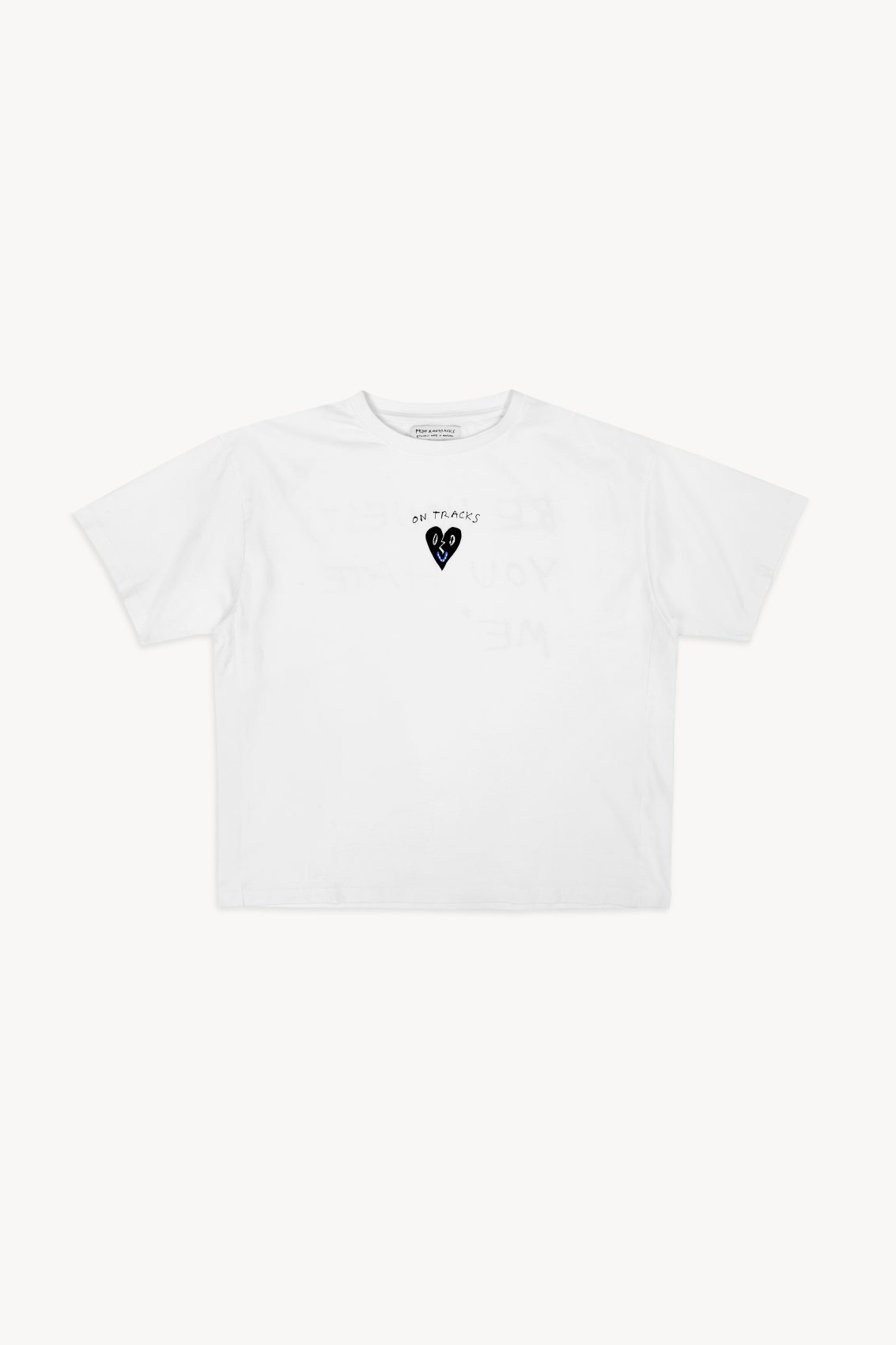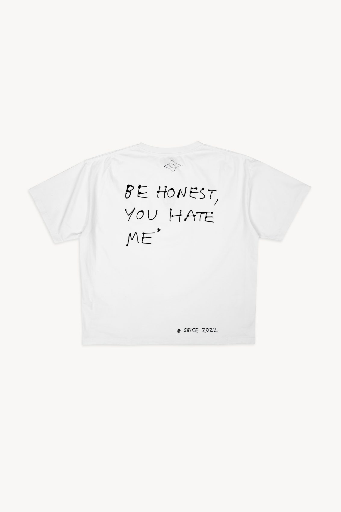 Waist line crop tee with an exclusive Pepo Moreno design “BE HONEST YOU HATE ME” on the BACK. Made in 100% cotton.