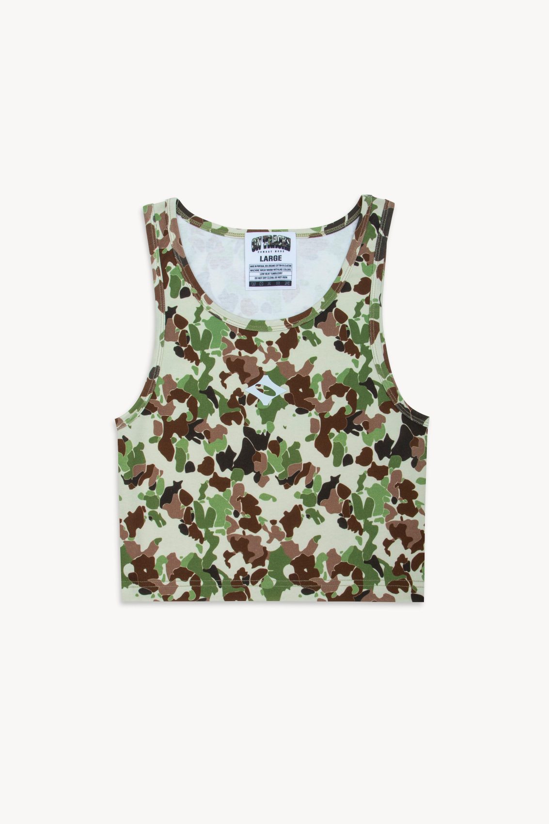 A cropped, fitted tank in light cotton. Camouflage AOP, combat mode, and iconic OnTracks logo at the chest.
