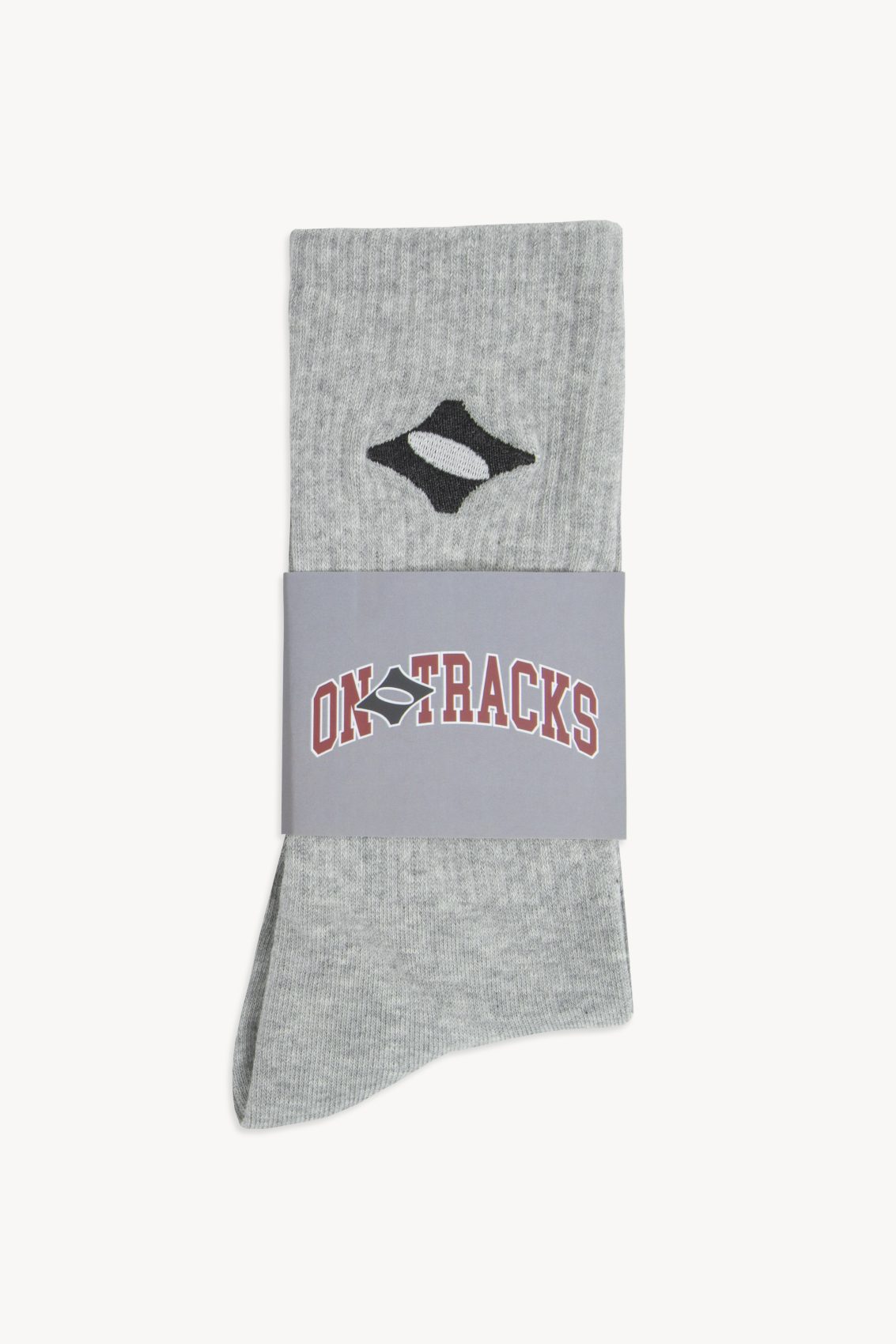 Sports socks in a cotton/performance fabric blend featuring an embroidery OnTracks logo.