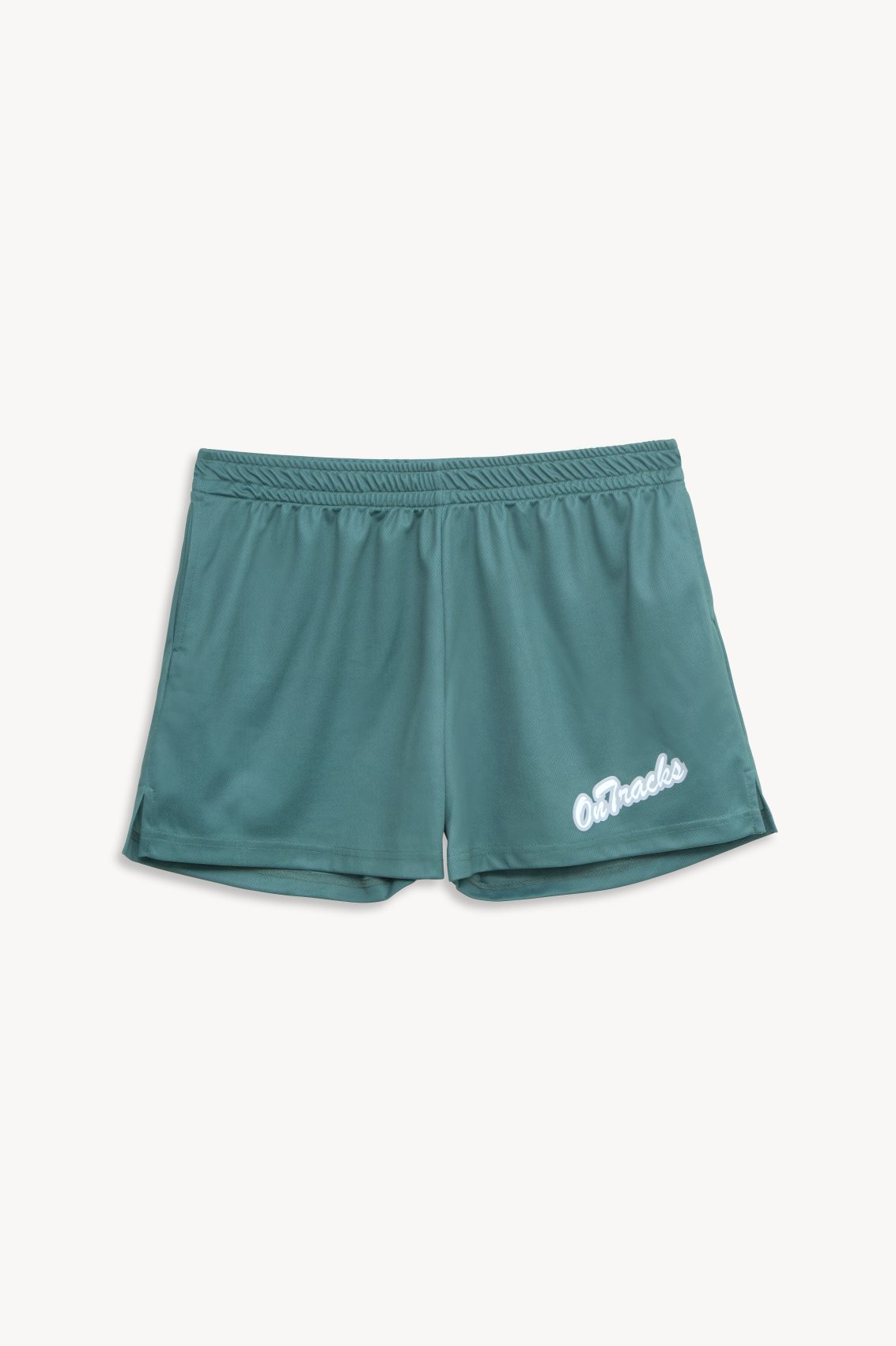 Lightweight athletic shorts with a relaxed fit and varsity-inspired detailing. Features an elastic waistband, a smooth polyester body and the signature OnTracks script on the leg. Made in breathable, fast-dry polyester.