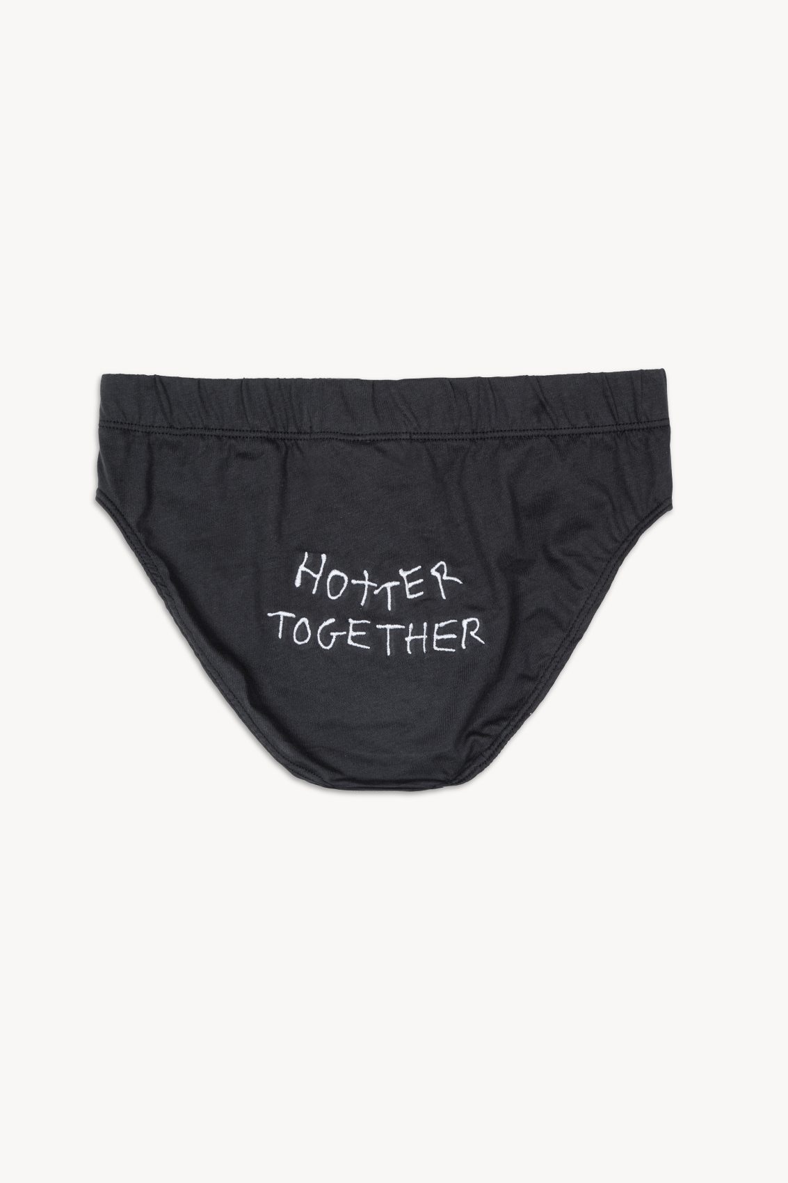 Our most wanted brief is back with an exclusive Pepo Moreno designed woven label on the waistband and embroidery quote “hotter together” on the back. Made with 100% cotton.