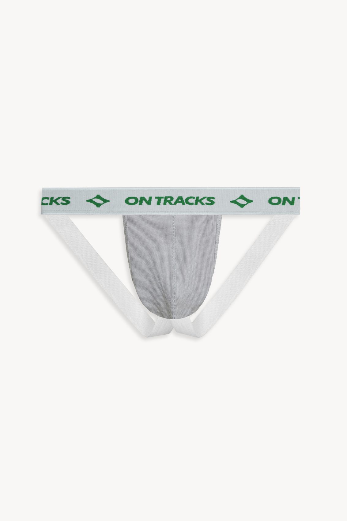 Athletic ribbed jockstrap with a supportive fit and a varsity-inspired ONTRACKS waistband. Built for movement and everyday performance, with a breathable front and an open-back structure for total freedom. Made in soft, durable ribbed cotton.